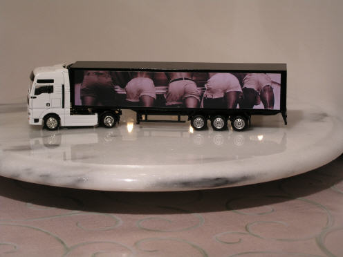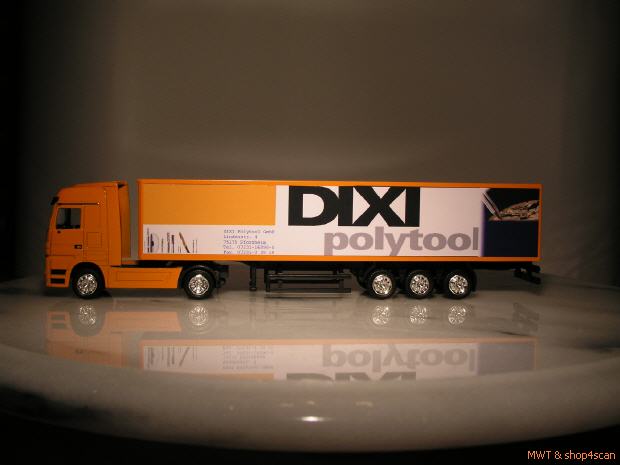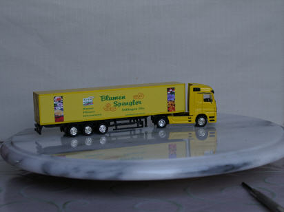 Zugmaschine und Auflieger sind aus Metall.